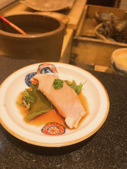 まずは明石産の蛸!!歯ごたえや香りなど、その辺のお店で頂く蛸とは一味も二味も違いました。特に蛸特有の磯の香り漂う風味がしっかりと感じられ、これは非常に良い素材だな、と感じました。