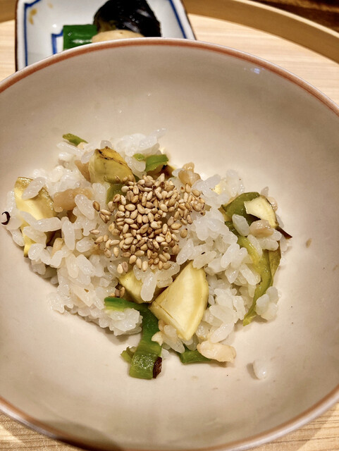 栗と万願寺とうがらしの炊き込みご飯