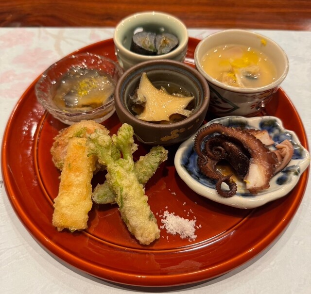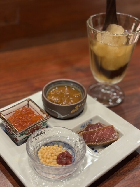絶品あん肝、めかぶ、なまこ酢、お魚のカレー南蛮漬け
