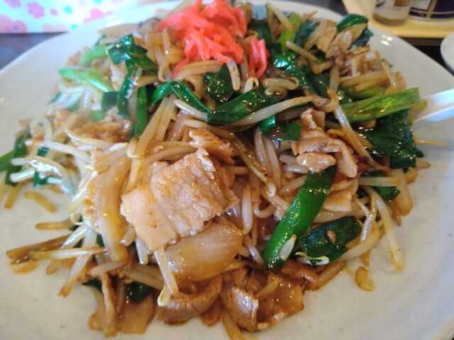 ニラ肉丼やしいたけラーメンなどが有名で人気メニューのようで、今回はニラもやし定食を注文。時間かかるかもしれませんと言われたが、20分ほどで着丼。山盛りのニラもやしに肉も入っており、ご飯がすすむ味付け。スープもいっぱい入っており、流し込みながら食べるのには最適。美味しく頂きました。