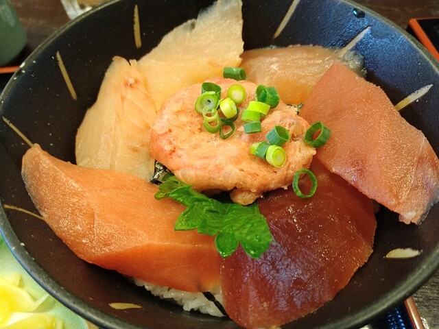 観光地でありながらも、比較的リーズナブルな飲食店。海鮮系の贅沢丼はそれなりの価格はするが、それでも市場に隣接する飲食店だからお得な価格帯。バクダン丼は十種類以上の魚介類が入っていて満足度の高い一品。また、ねぎま蕎麦も出汁がしみて美味しかった。三色丼は、三色じゃないですよね(笑)部位、食感がいろいろと楽しめるお得な一品でした。ごちそうさまです。