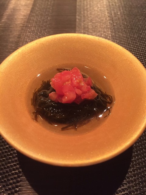 もずく酢 高知のフルーツとまと添え❣️愛するもずく??が こんなとこに (*´꒳`*)