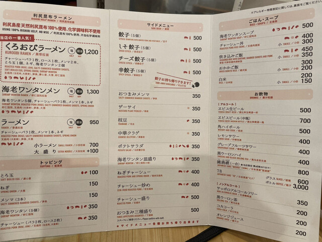 利尻昆布ラーメンくろおび。名前からして好みなのですが、その名の通り利尻昆布をはじめ、こだわりの素材を活用した無化調ラーメンです。