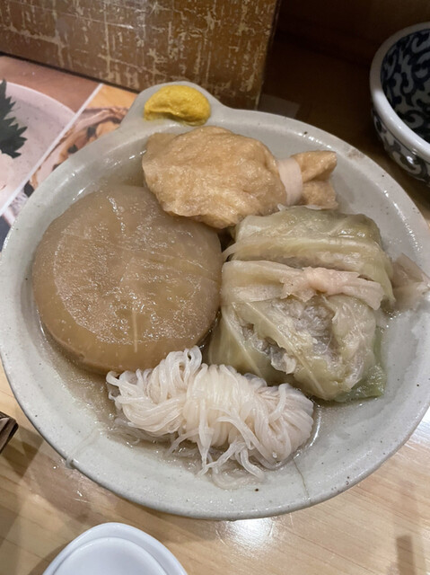 大根は味がしみてて、はんぺんは魚の旨味ぎっしり、きゃべつはとろとろで中のひき肉の旨味も凄い、もうあげるとキリがないです(ちなみに牛すじ煮込みも激うま)
