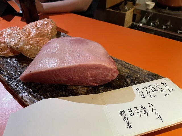 ◯昼も夜も12,000円コース一択。砂糖や繋ぎ不使用なのに甘々モチモチの男爵芋コロッケ、蛍烏賊と牡蠣の出汁のみで炊いたごはん、貝と鶏出汁のたっぷりフカヒレ湯豆腐、すりおろしシンママ+2種の筍+春キャベツでとった出汁で食べる黒毛和牛しゃぶしゃぶ、The bestカラスミeverのごはん、鰤漬け丼、出汁ごはん、牛すじカレー等など、食材も味も量もストーリーも、全て最高。