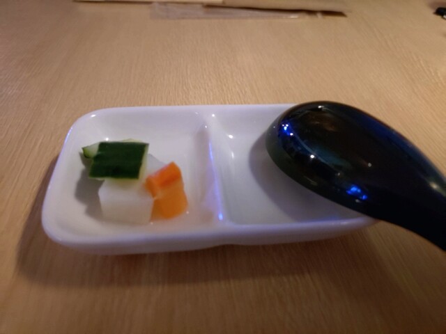 完食しようとどんぶりを持ち上げたら、下に敷いてあった皿が水滴で張り付いていて落ちた…。割れなかったけど、コレはいらないんじゃないかなぁ。