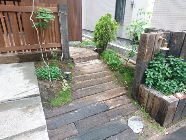入口スロープ周辺のガーデニング、植物が順調に成長していますね!