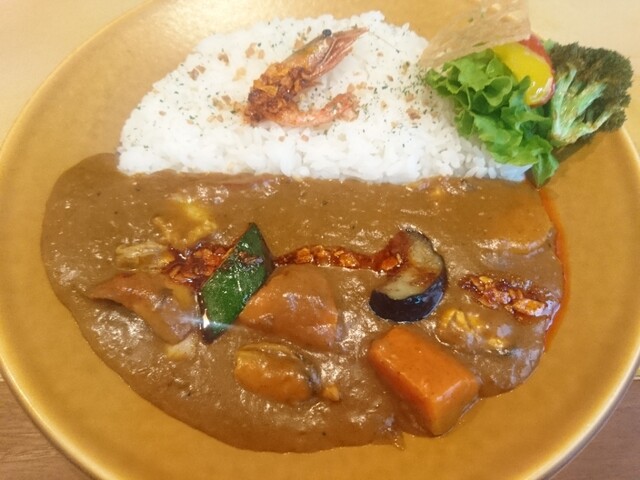 通常の『浜カレー』(1回目参照)と異なり、ソフトシェルシュリンプ以外の海鮮の具材がルーに入っている。