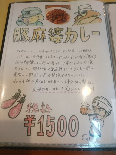 今回は『豚麻婆カレー』(1500円)を辛さ4、ライス高で注文。