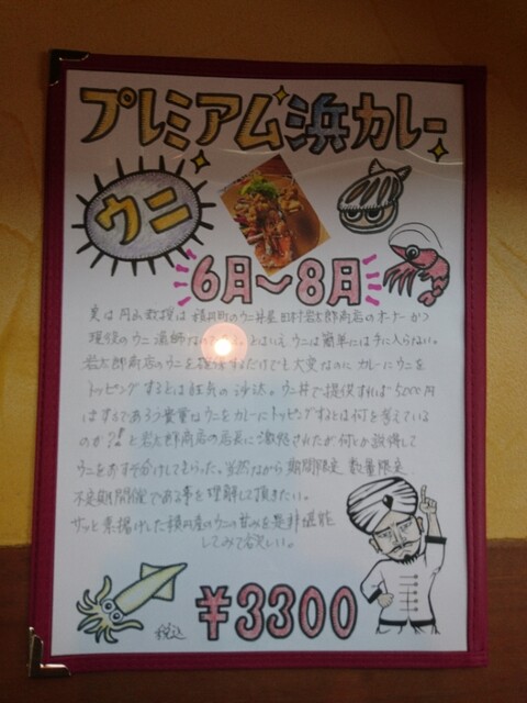 いつものカウンター一番手前の席が埋まっていたので一番奥に座ったけど、ここまで調理中の浜カレーの香りが漂ってくる。