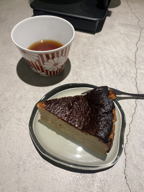 チーズケーキは表面しっかり焼き上げられており、ねっとり濃厚な仕上がり。焼き目の香ばしさが印象的だった。