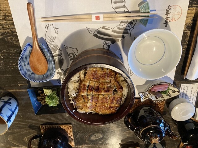 さていつも通り櫃まぶしだが、今日は腹ペコだったので、「柳」を注文。鰻が2段になっており満足感満点。先ずは、そのまま山椒をかけていただく。関西風で焼きだけの香ばしい食感で美味い。次に実山椒、ネギ、わさびを乗せていただく。ここの実山椒は鼻から抜ける香りが香ばしく濃いめの蒲焼によく合う。最後に、薬味の上からお出汁をかけてサラサラとお茶漬け風にいただくと、さっぱりとしてこれまた快感。これぞ櫃まぶしの醍醐味。ボリュームがあるにも関わらずあっという間のひと時でした。