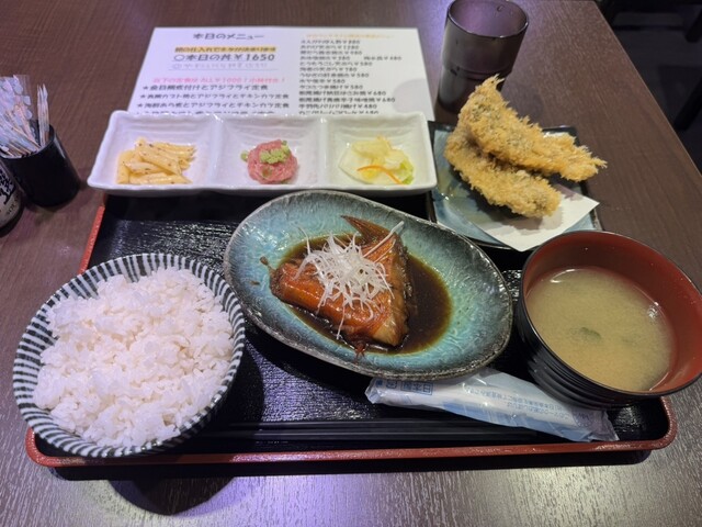 金目鯛の煮付けとアジフライ定食をオーダー。