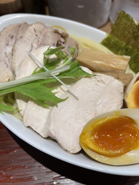 鶏白湯魚介つけ麺 チャーシュー増し味玉トッピング