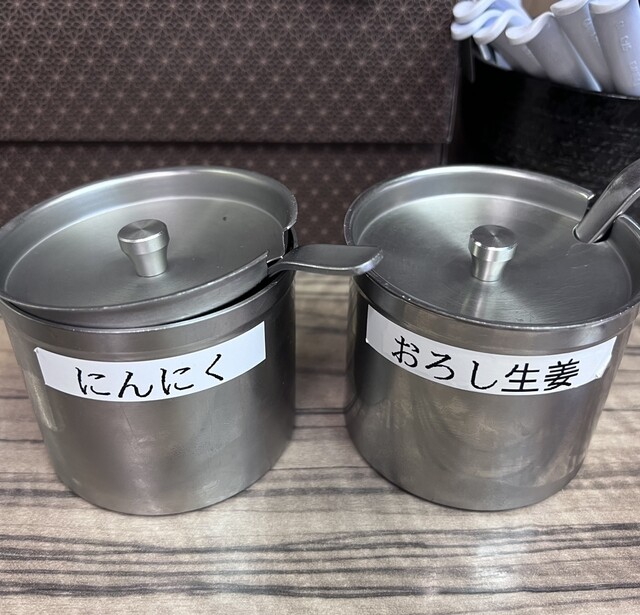 生姜は卓上にありますが、刻みにんにくは店員さんにお願いして持ってきてもらいます。刻みにんにく好きなので、好きなだけ入れられるのがうれしいです。