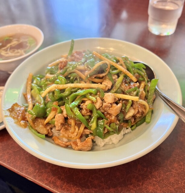 ✨テレビから最近はひるおびが流れる西新宿タワーオフィス街の行列町中華屋さんで肉ピーマン丼✨