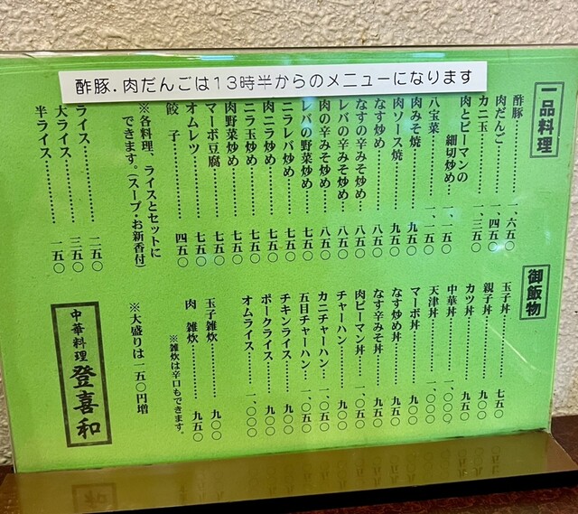 登喜和には中華メニューとオムライスを