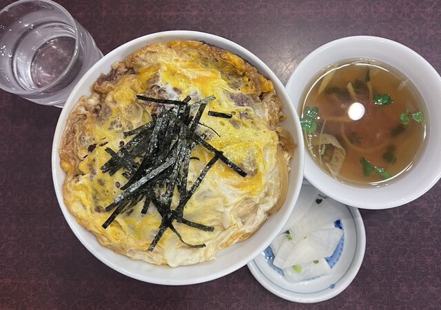 つゆがとても甘くて、よく煮込まれてカツの存在感が薄く玉子にもしっかり火が通っています。とんかつ好きなのでかつ丼でもカツの存在感は感じたいですね、スープはおいしかったです。