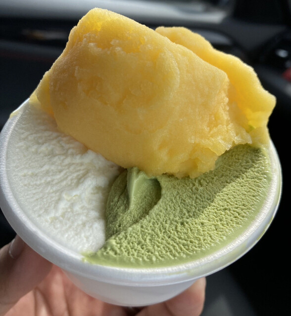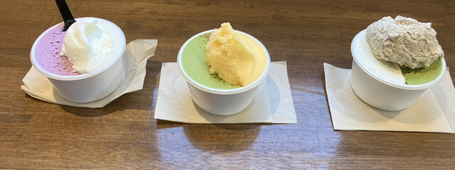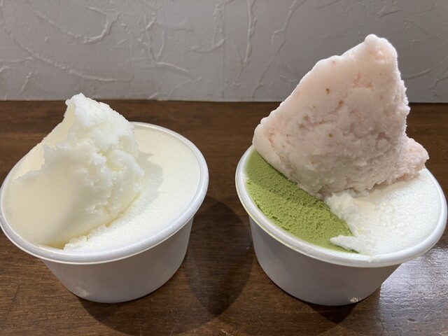 ゆこうは、さっぱり酸っぱいシャーベットで、黒蜜きなこは甘くて美味しい!