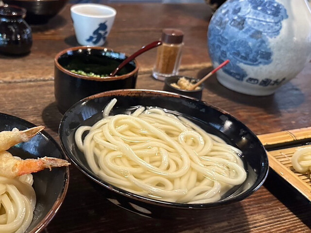 ここは釜揚げうどんは外せない、しかし、ざるうどんも食べたい、ということで両方いただくことにしました。