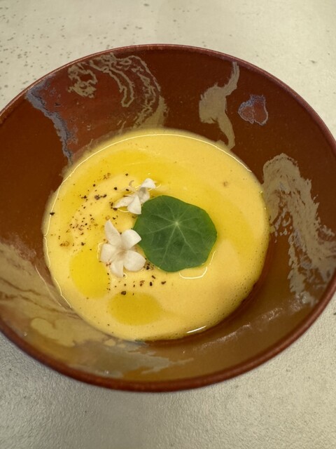 魚料理、肉料理を含む8800円コースとはじめにビール、そのあとはワインペアリングをいただきました。