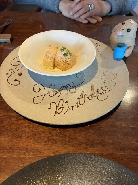 予約時にお誕生日を伝えたらプレートしてくださったのはすごくうれしかった。最近有料多い中ありがたいです。