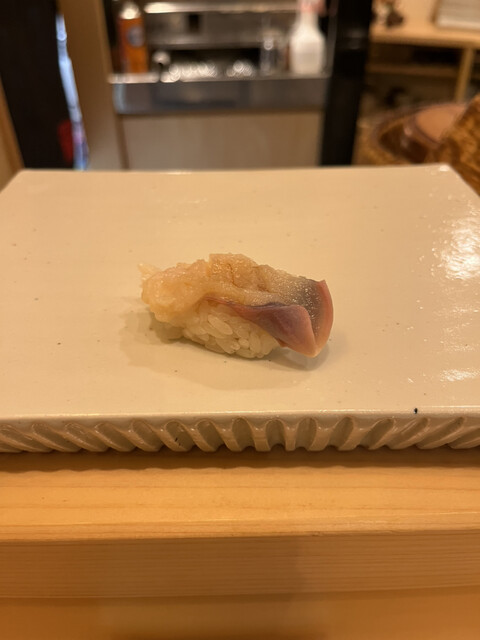 先付から始まり、お酒のアテになる料理が数品続いた後に握りが出てきた。どれも素材の味を生かすように料理されていて、大将の技術の高さがうかがえる。
