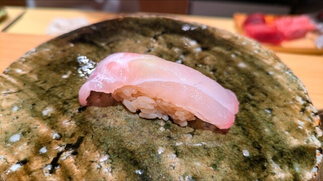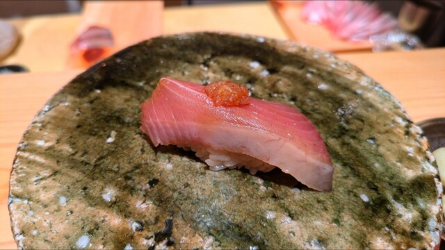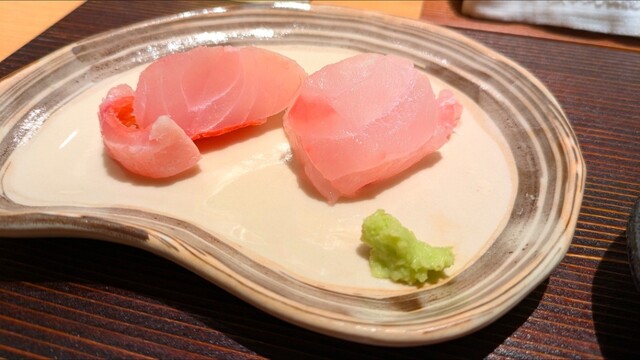 お皿はどれも美しく整った味わいで完成度が高いのですが、特に今回はエイの肝の甘味、海鮮丼の味の洪水、カミナリイカの食感、もはやスイーツな和三盆のたまごに心奪われました。