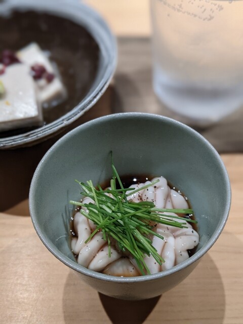 春巻きの皮に包まれた子持ち鮎は丁寧に骨を取りほぐされていて口当たりの良さが絶品です。そこへ安納芋が合わさり新しい味わいを感じれるました。