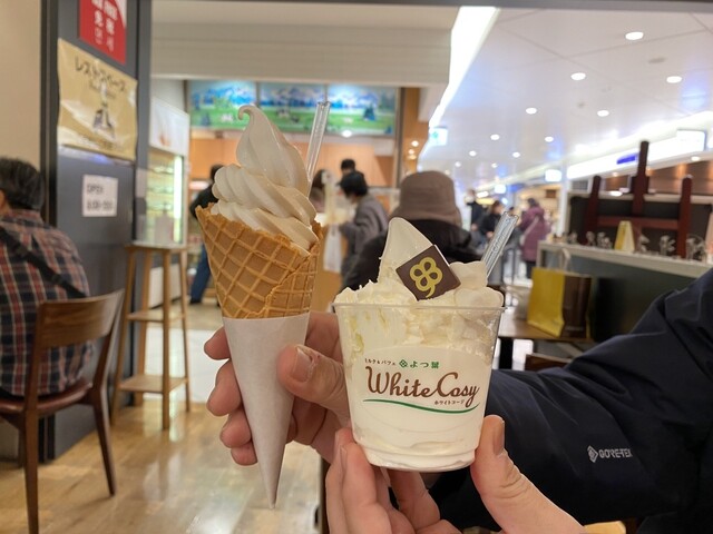 きのとやのソフトがやたら混んでる中、すいてます。店舗のそばにテーブル4つ程度のカフェスペースがあり、ありがたく使わせていただきましたが、どうやら店のスペースでなく、共通の休憩所的場所のようです。開店後結構時間がたっているようで少々古臭いイメージの店舗です。リニューアルが望まれます。