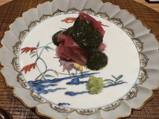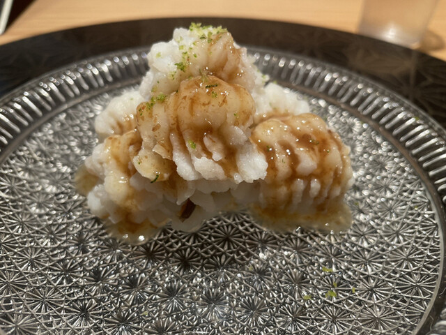 甘海老の昆布締めとハリイカ…鯛の酒盗和え