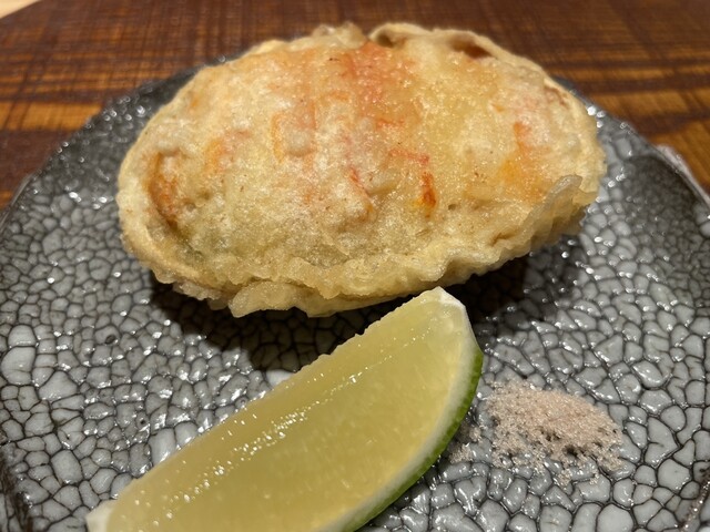 毛蟹のフライ、淡路の新玉ねぎのソースで