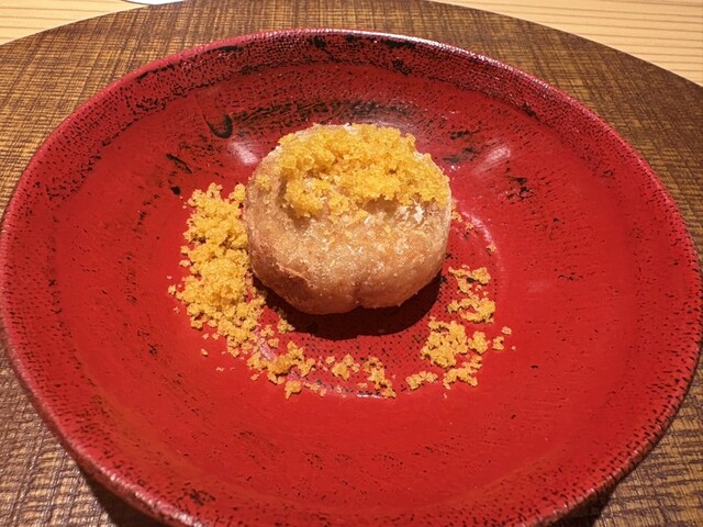海老芋といぶりがっこと湯葉を巻いて揚げ、カラスミ掛け…柔らかい食感、ウマウマです