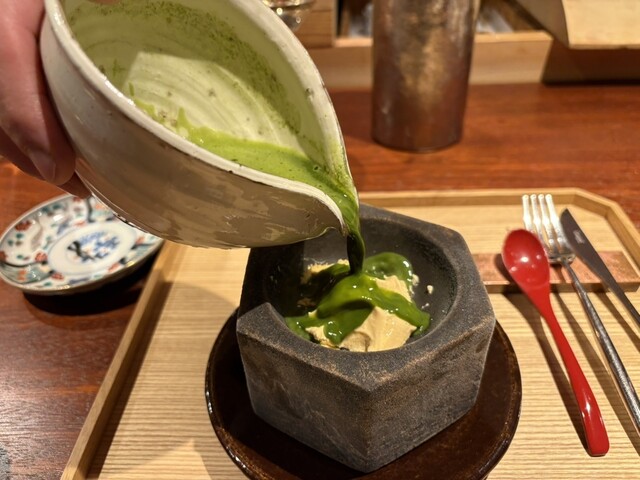 デザート、アイスクリーム、抹茶をかけて頂きましたウマウマ