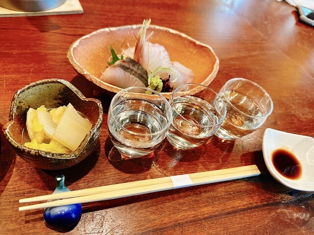 • 造: 天然鮮魚のお造り3種盛り(身の締まりが最高!)