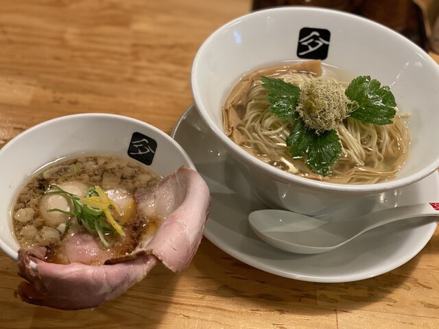 オーダーは、当店イチ推しと書いてあった特製豚つけ蕎麦と皆さん頼まれている様子の和え玉をシングルで。書いてあるとおりの食べ方でつけ蕎麦をいただきましたが、これは美味しいですね。細ちぢれ麺ながら腰があり香りが良い麺は、そのままでもつけ汁につけても美味しいです。さらにつけ汁も醤油の旨味が存分に楽しめ、チャーシュー2種、煮卵、ワンタン、穂先めんまなどの具材もそれぞれ手が込んでいます。また、和え玉はとても濃厚で思わず一気に食べてしまいました。流石、つけ麺ランキング全国5位という感じで、素材それぞれにこだわりがあり一つ一つが美味しいうえに、それぞれが重なり合って旨味を引き出している感じがします。また、接客も良く、退店時は何度も御礼を言われたほか、つけ汁を右左どちらに置くのが良いか初めて聞かれ、気配りの良さを感じました。とても美味しかったです。ごちそうさまでした。