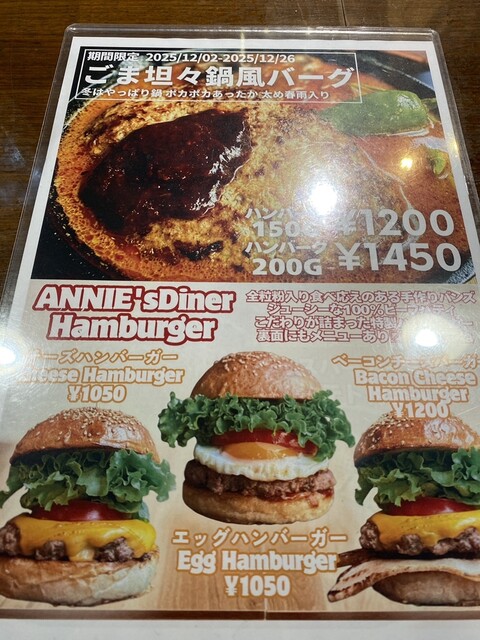 オーダーは限定と決めていましたが、12月はごま担々鍋風バーグとのことで、150gをチョイス。程なく配膳されましたが、確かに担々ですね。辛いもの好きには嬉しいお味ですが、辛過ぎずちょうど良い塩梅ですね。もちろんサラダもスープも美味しく、お腹いっぱいにもなりました。ごちそうさまでした。
