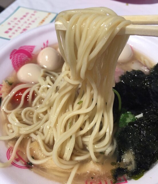 黄金色のスープは、平子、背黒、いりこだしで、エグ味はなくあっさりとしているのですが、塩分強めでかなり塩辛く、だしの味が損なわれています(^_^*)