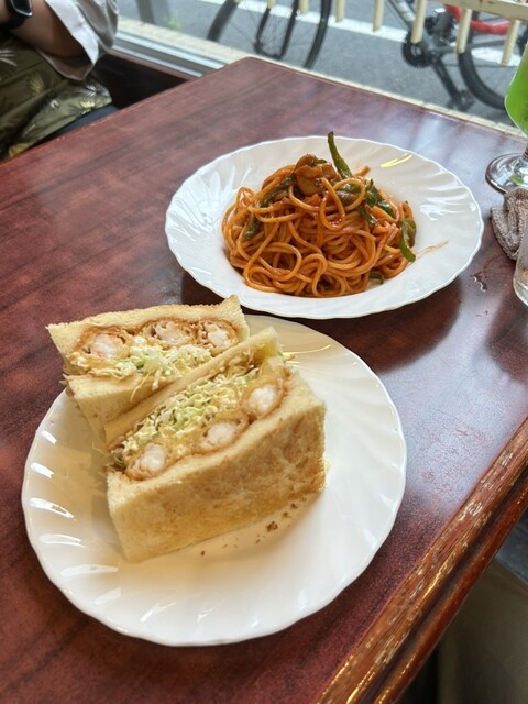 喫茶だしナポリタンもはずせないし、写真で見た海老トーストも美味しそうすぎてはずせなくて、結局色々食べてしまった