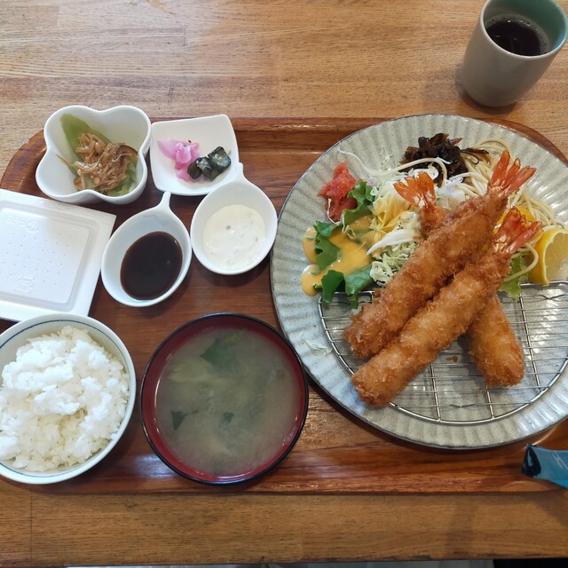ちなみに、こちらのメニューはとっても大きな海老フライが3本ついて1200円。こちらのお店で一番高いメニューかと思われます