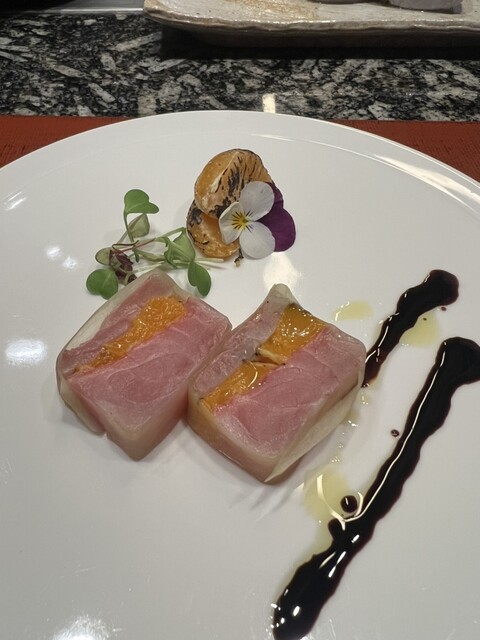 あとガーリックライスに変更やデザートの変更、お酒を飲んで1人3万ぐらいと考えると、もう少しパフォーマンス的に楽しませて欲しかった感はあるかな。 淡々と調理してもらって美味しかったけど