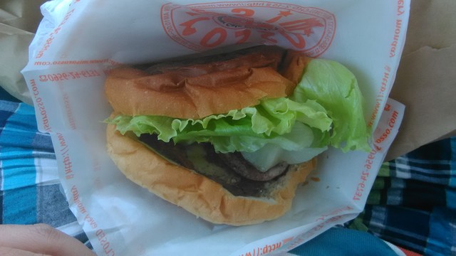 焼いたパンの食感が良い。ジャンボは本当に大きいし食べづらい。下にソースが垂れてきて大惨事になるかも、要注意。