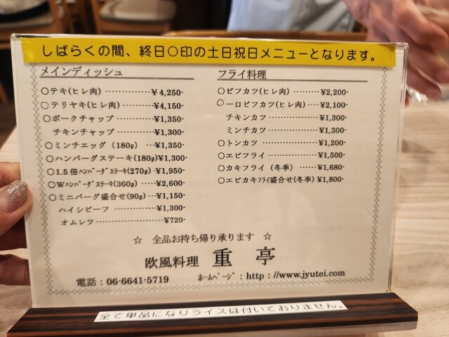 重亭(なんば(大阪メトロ)、大阪難波、難波(南海)/洋食、ハンバーグ、オムライス)