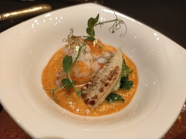 長崎県産ウチワエビのロティと筍のポワレ シャトーシャロンのソースで