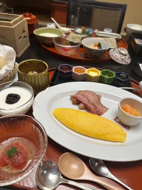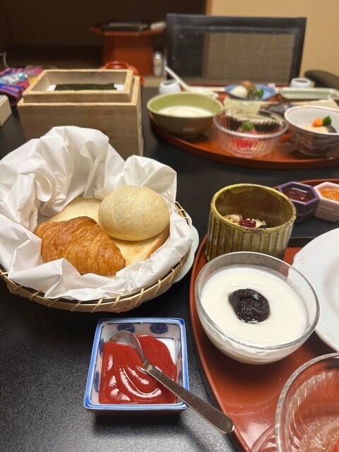 気になったことが一点。老舗なので少し期待したのですが、妊娠のため生物が食べられないことを事前にお伝えするのを忘れており、到着後若い仲居さんにお伝えしたのですが、夕食は当然のようにお造りが出てきて、『急でしたので申し訳ありません。』の一言もなく(手一杯で忘れたのかな❓)、何事もなかったように過ぎたことでしょうか。まだまだ袴の捌きが行き届いていないようでしたので、新人さんなのでしょう。若い仲居さんは、宿泊客の若年層やフレンドリーな外国人客に付いた方が良いのかなぁ〜とも思いました。