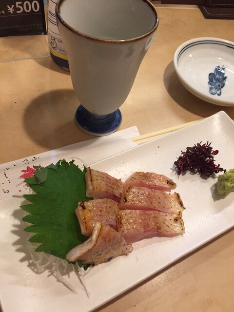 16時前に北千住に着くと思わず足が向いてしまう此のお店。今日いただいたのは、限定酒ナイン岡山、ヒラマサ刺し、白魚かき揚げ、生じゅん菜生姜酢かけ、のど黒炙り造り、ふぐ白子焼、黒むつ昆布じめ