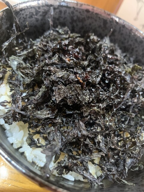 岩海苔がスープに溶け、オニオンフライも溶け込み何度も味変を楽しめる一杯