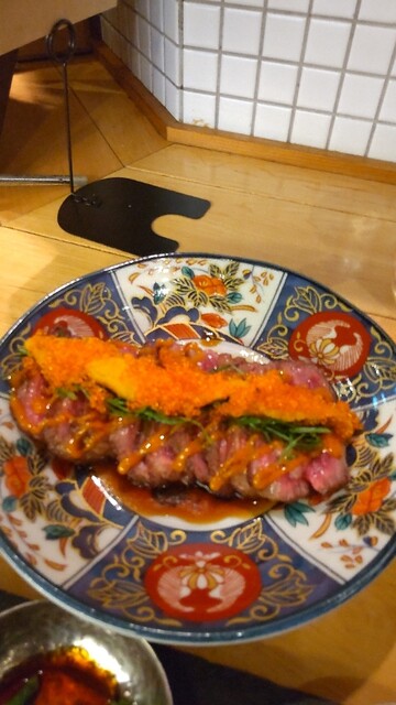 ※和牛と雲丹のUNIKU・これはジミに確実に旨かった、何と言うか???とびこと雲丹と和牛が絡み合うお味はジミに最高。