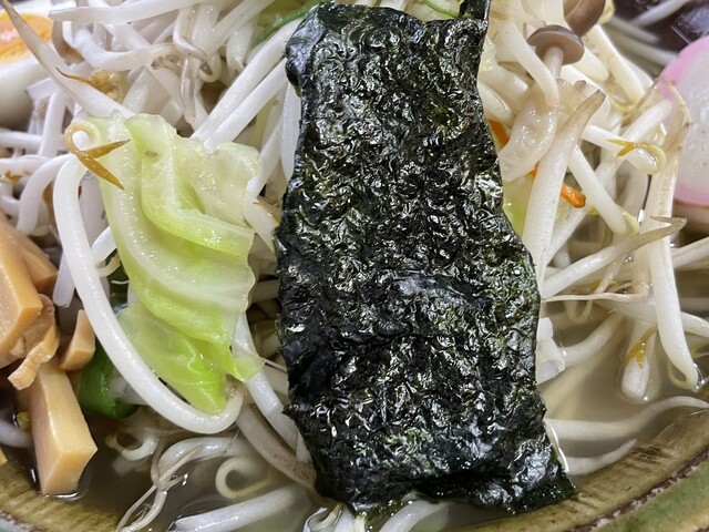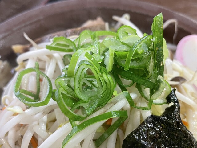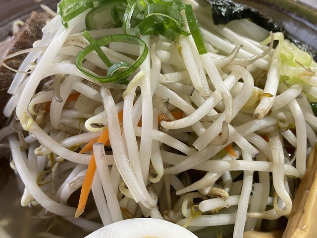 「あじわいラーメン」のトッピングは豚バラ・もやし・キャベツ・人参・ねぎ、中でももやしの量は二郎系のマシマシレベルです。