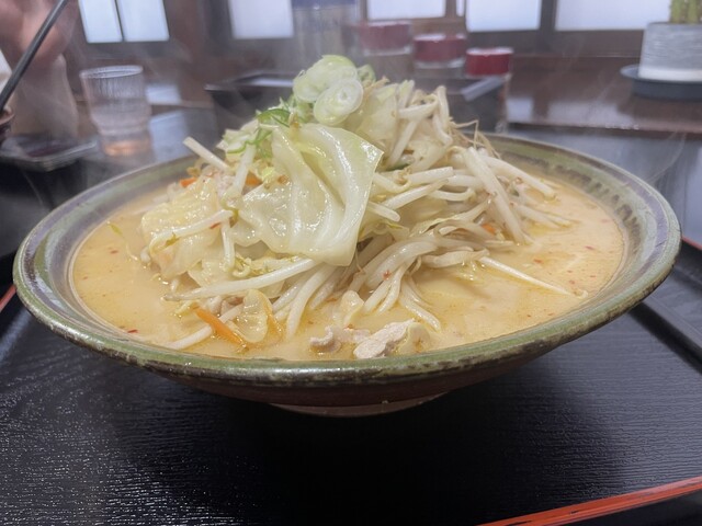 「みそラーメン」のトッピングも「あじわいラーメン」と同じで、なかなか麺にたどり着かない超大盛り、濃厚な味噌スープに浸していただきました。